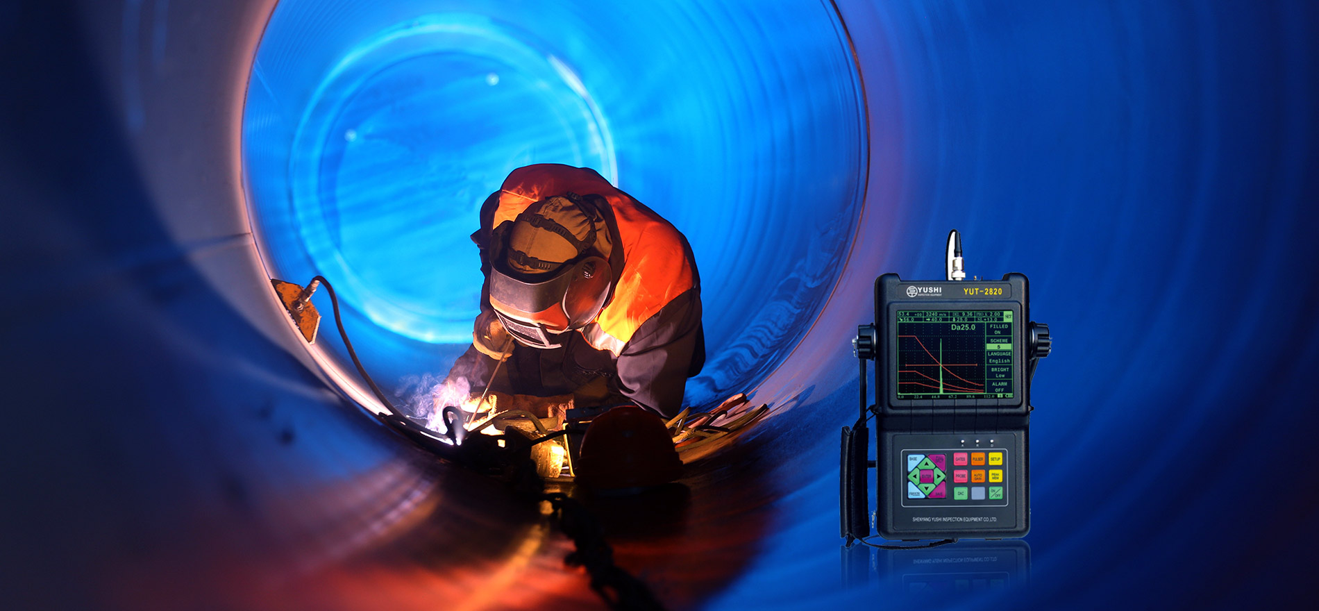 超聲波探傷儀在工程中的應用,YUT系列探傷儀具有可變方波技術,全密封設計,全屏顯示功能,DAC、AVG曲線,大容量鋰電池,中英文界面。